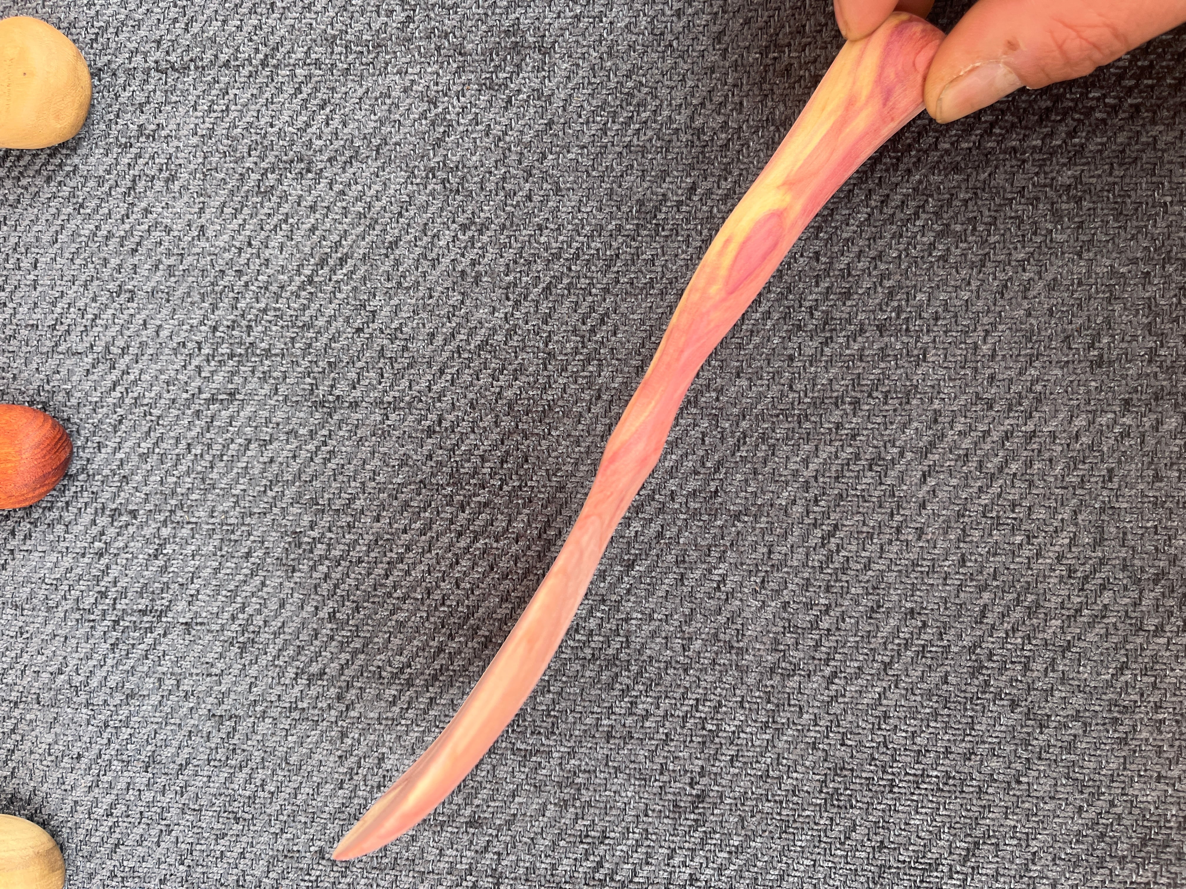 檜の仲間で庭木などによく使われる木です。 お米を掬う際ほのかに杉と檜の中間の様な香りがします。 あまり流通していない木ですので、 かなり珍しい一点です。 是非お試しください。